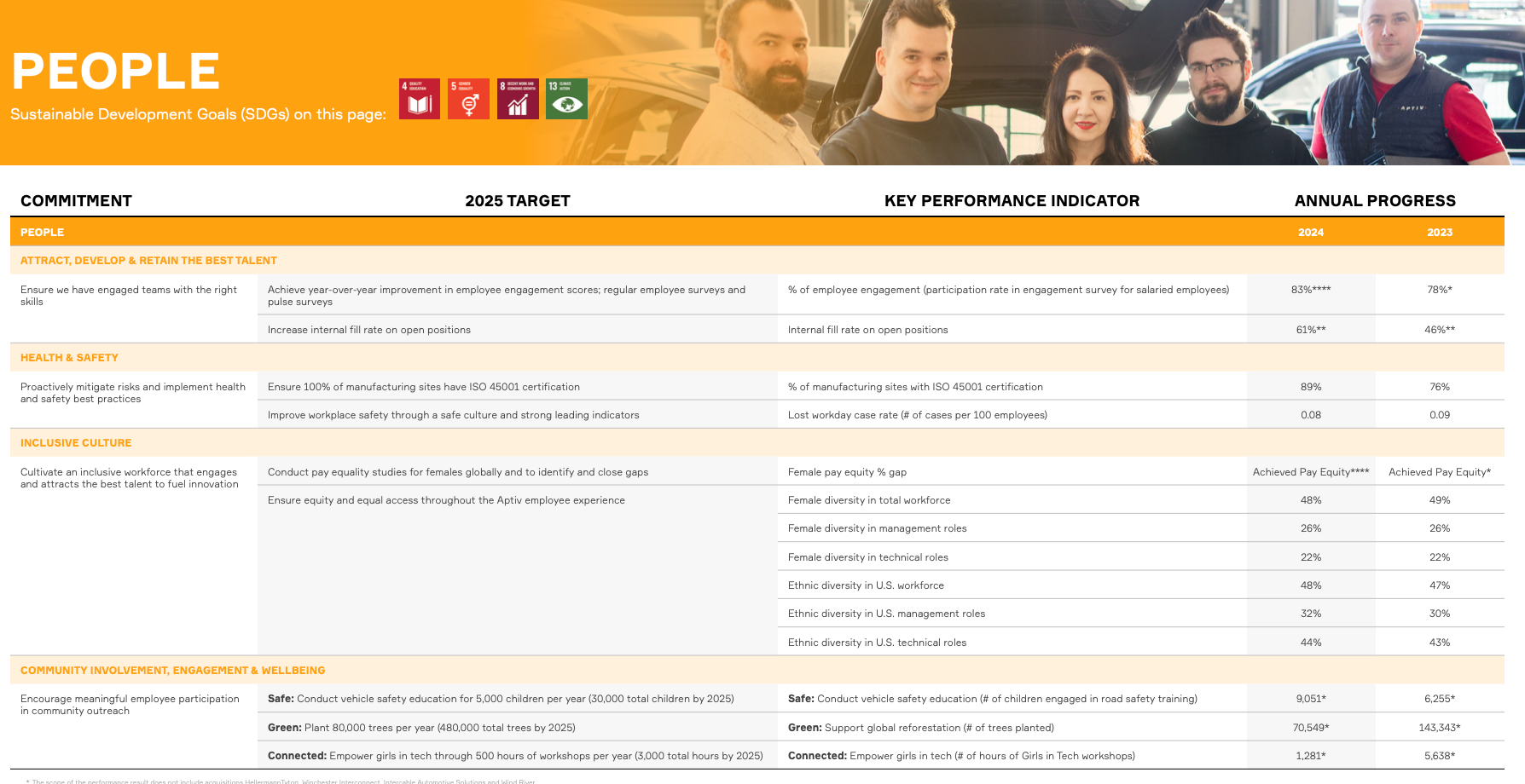 Cindy is responsible for end to end oversight of Aptiv’s Sustainability program including the strategic implementation of Aptiv’s Sustainability pillars through collaborating with business units, functions and the Sustainability team to enhance Aptiv’s Sustainability governance structure and ensure its integration into existing company frameworks. She drives the continued optimization of Aptiv’s organizational capabilities, processes and tools to enable the attainment of Sustainability goals, supporting the commitment to building a sustainable business that delivers long-term value to stakeholders. Cindy joined Aptiv in 2018, having several different responsibilities including design and execution of Aptiv’s customer experience program, leading commercial and business teams. Prior to joining Aptiv, Cindy held multiple roles at Marelli and FCA giving her over 20 years of experience and in-depth knowledge of multiple automotive OEM global commercial and product creation processes. Cindy graduated Kettering University with a B.Sc. in Electrical Engineering.