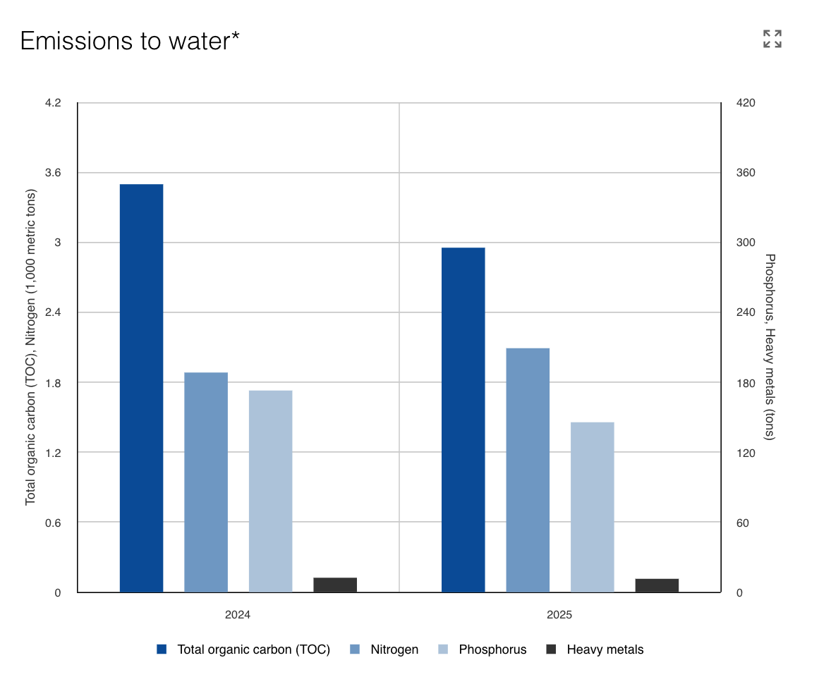 - Introduced sustainable water management at eleven additional sites in 2025, increasing from 65% of 2030 target (of 90% of total water withdrawal covered) in 2024 to 73% in 2025.