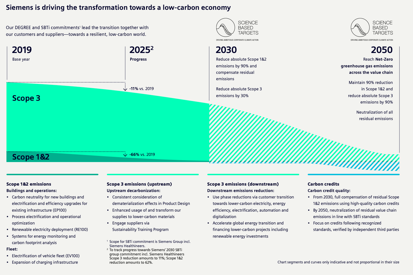 Committed to reducing its physical CO2 emissions from its own operations by 55% by 2025 and 90% by 2030, compared to a 2019 baseline. To do this Siemens is investing €650 million ($683 million) in its own decarbonization by 2030. (Dec 2022)